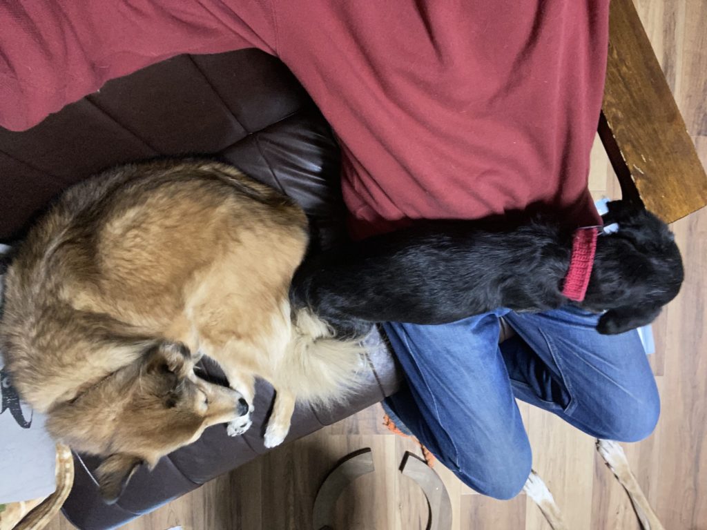 あ、そうだ。うちの子ねる、人でも犬でもネコでもくっつかれるのが大嫌い(なぜか私だけは大丈夫)。それが今日は預かり犬のダックスミックスがソファーに乗ってきても怒らなかったんです。