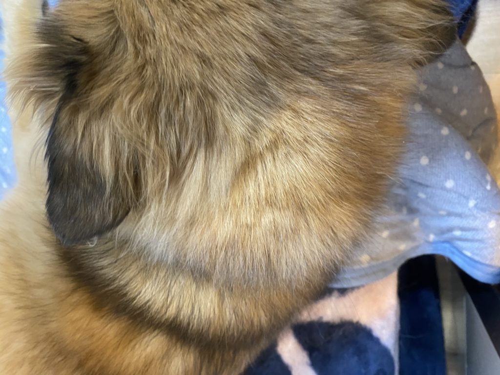 ちょっとお尻の毛が長かったので、家に帰ってからバリカンでセルフトリミングしました。おしりの毛とかしっぽはうまくいったんだけど、耳の脇の毛もちょっと短くしようかなとバリカンを当てようとしたら急に振り向くので、頭の後ろをジョリっとしてしまいました。ゴメン。