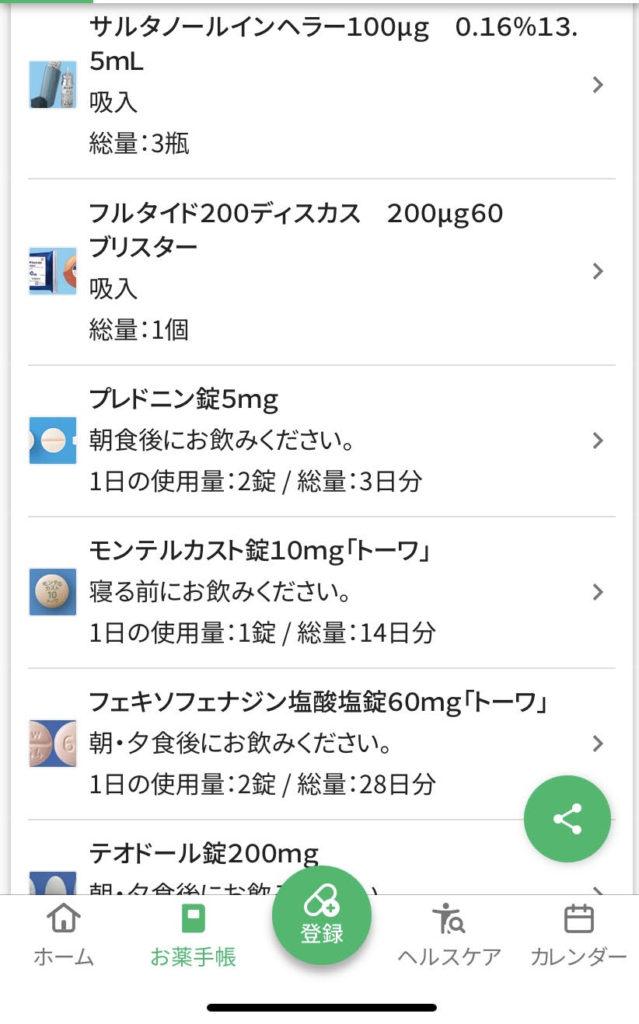 受診時に発作は出ていなかったため吸入はしなかった。処方された薬は以下のとおり。